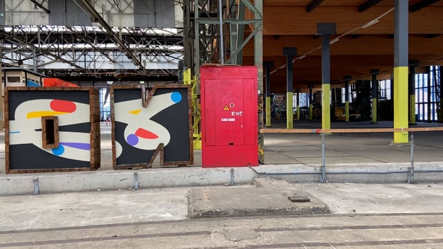 Making five giant letters out of old shipyard material and white canvases forming the word NORTH. The canvases were first used as a flip-over in the brainstorm sessions that led to a closing event. During that event, artist Sue Doeksen made live art works out of the input that was already in place on the letters. The letters ended up in Art City and were then used by another artist who gave it a whole new feel.